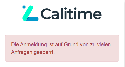 Wird bei der Anmeldung zu oft das falsche Passwort eingegeben, wird das Login blockiert (Achtung diese Beschreibung gilt nur für die Loginvariante «TimeRocket (Calitime)»).