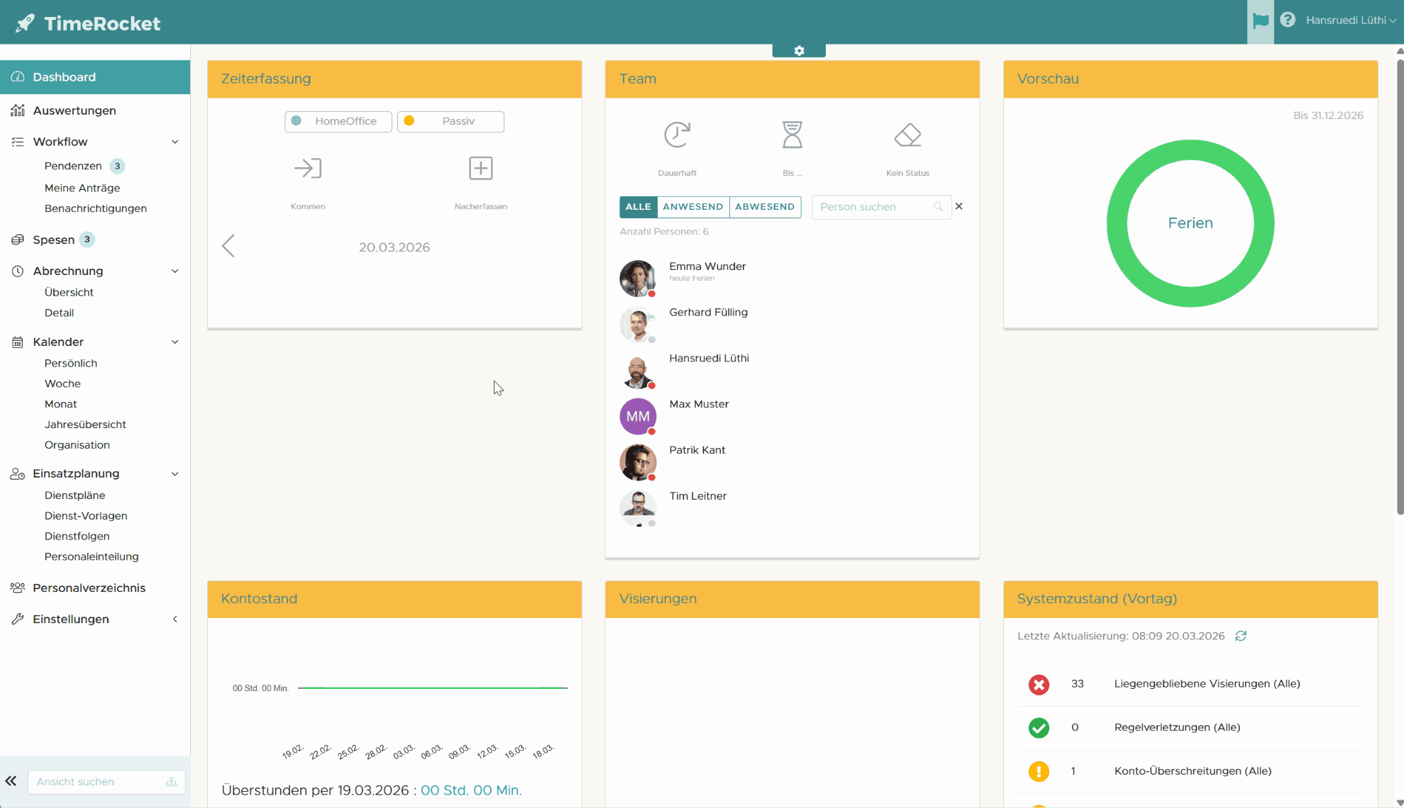 Ist die Eingabe des Pincodes korrekt, wird die Buchung akzeptiert und der Status auf der Person sofort aktualisiert.