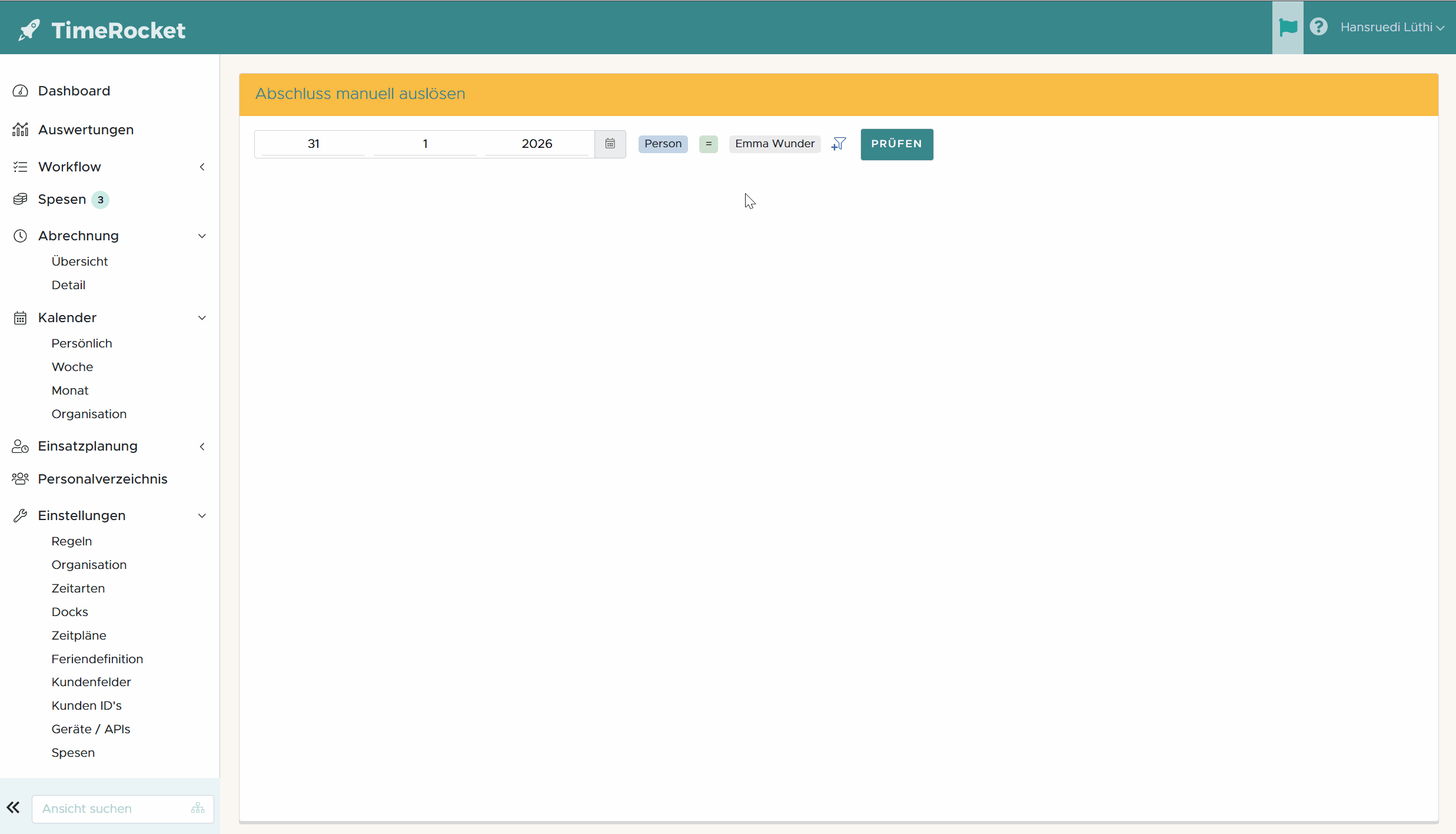 Wichtig: Wählen Sie jeweils nur die betroffenen Personen aus. Das Datum entspricht dem letzten Tag der abzuschliessenden Periode. Wenn Sie beispielsweise den Januar Abschluss erneut auslösen möchten, wählen Sie den 31.01.JJJJ.