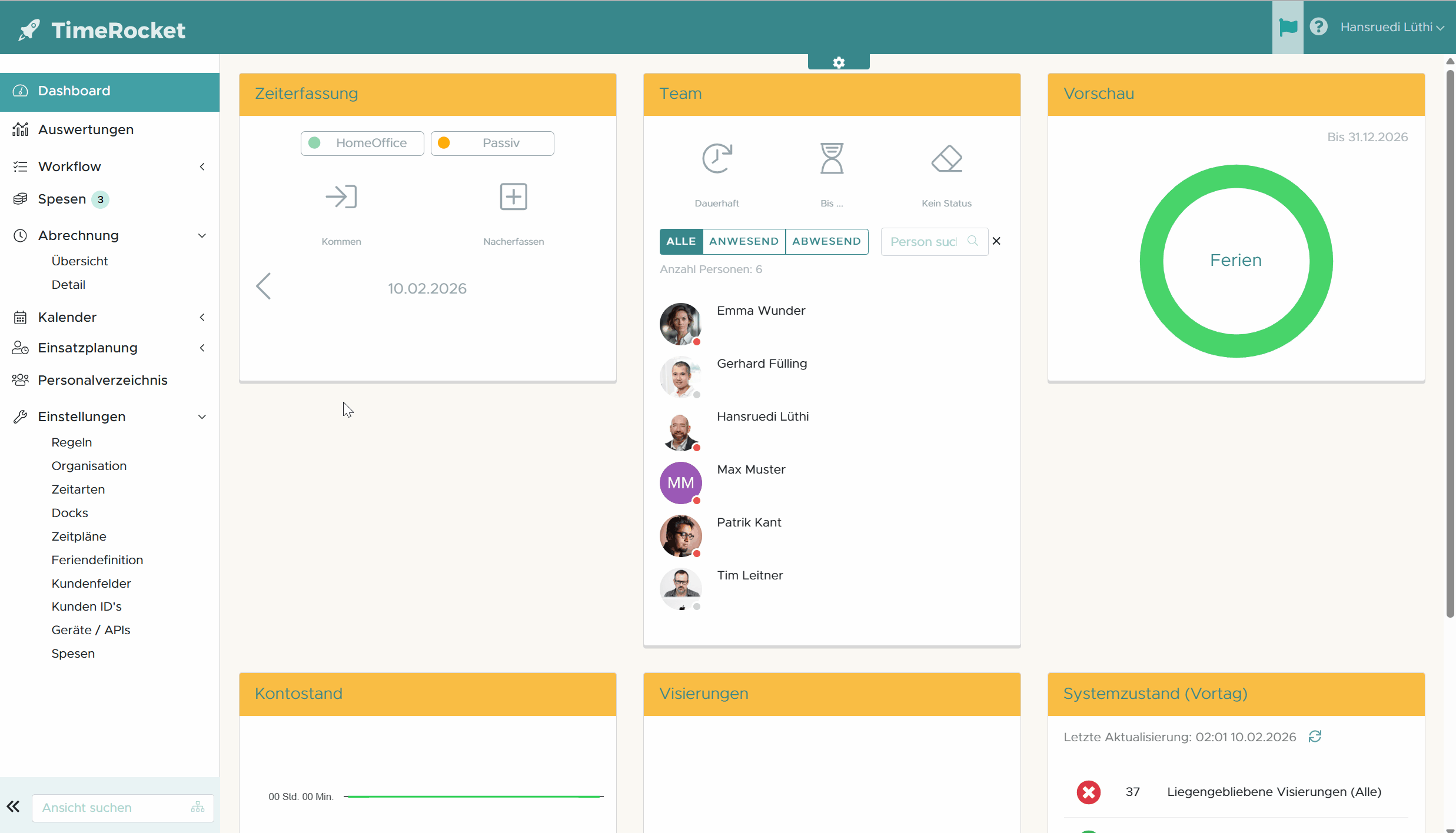 – Stempelkarte visieren: Der Abschluss wird aus Sicht des Users visiert. Je nach Workfloweinstellung geht die Pendenz weiter zur vorgesetzten Person.